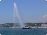 Von Versoix fahren wir auf dem Jakobsweg weiter über Genthod, Chambèsy und Pregny bis in die Vororte von Genf. Dem Botanischen Garten entlang gelangen wir auf der Strandpromenade zum Genfer Wahrzeichen dem bekannten Springbrunnen. Wir überqueren die Rue de Mont Blanc, den Quai des Bergues, und kommen über den Pont de la Machine auf geradem Weg in die Rue de Commerce. Nachher biegen wir links und gleich wieder rechts in die Rue de la Rôtissserie und Rue de la Madeleine ein. Von dort geht es rechts in die Rue de Perron zur Kathedrale.