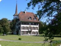 The route follows the crest of a chain of hills and we enjoy a beautiful outlook to the Bernese Alps, the Gantrisch region and the hilly country of the Schwarzenburg region. In Mättiwil before Rüeggisberg, we join the leg of the Way of St. James that comes from Lucerne. From the reformed St.Martin church, a field path leads us down to the big parking lot in front of the ruins of the former Clunian priory. This monastery, founded in 1072, cared mostly to the well-being of the pilgrims, but was closed in the 15th century. The history of the monastery is documented in a small exhibition in the museum beside the parsonage.
