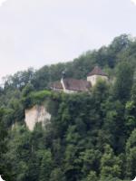 Auf der Anhöhe am jenseitigen Birsufer das erstmals 1102 erwähnte Schloss der einst mächtigen Grafen von Soyhieres/Saugern. Die Anlage war im 19. Jh. Wohnsitz des bedeutenden jurassischen Historikers und Altertumsforschers Auguste Quiquerez (1801-1882).