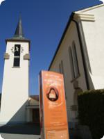 Mit 672 m erreichen wir den höchsten Punkt der heutigen Etappe, den Räschberg. Nun geht es wieder sanft hinunter über eine kleine Marien-Wallfahrtskapelle beim Hofgut Albech bis nach Soyhières (dt. Saugern): Die Dorfkirche ist Ziel einer kleinen regionalen Wallfahrt: In der Krypta der Dorfkirche werden die sterblichen Überreste von Père Jean-Pierre Blanchard verehrt, der 1824 im Rufe der Heiligkeit gestorben ist. Ebenfalls hier verehrt wird auch Mère Marie de Sales Chappuis (1793-1875).