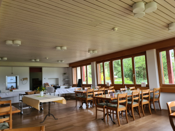 Vegetarische Küche. Inkl. Frühstücksbuffet. Mittag-/Abendessen auf Anfrage. Meditationskapelle, Bibliothek, Cafeteria, Permakulturgarten und Privatküche zur Mitbenützung.