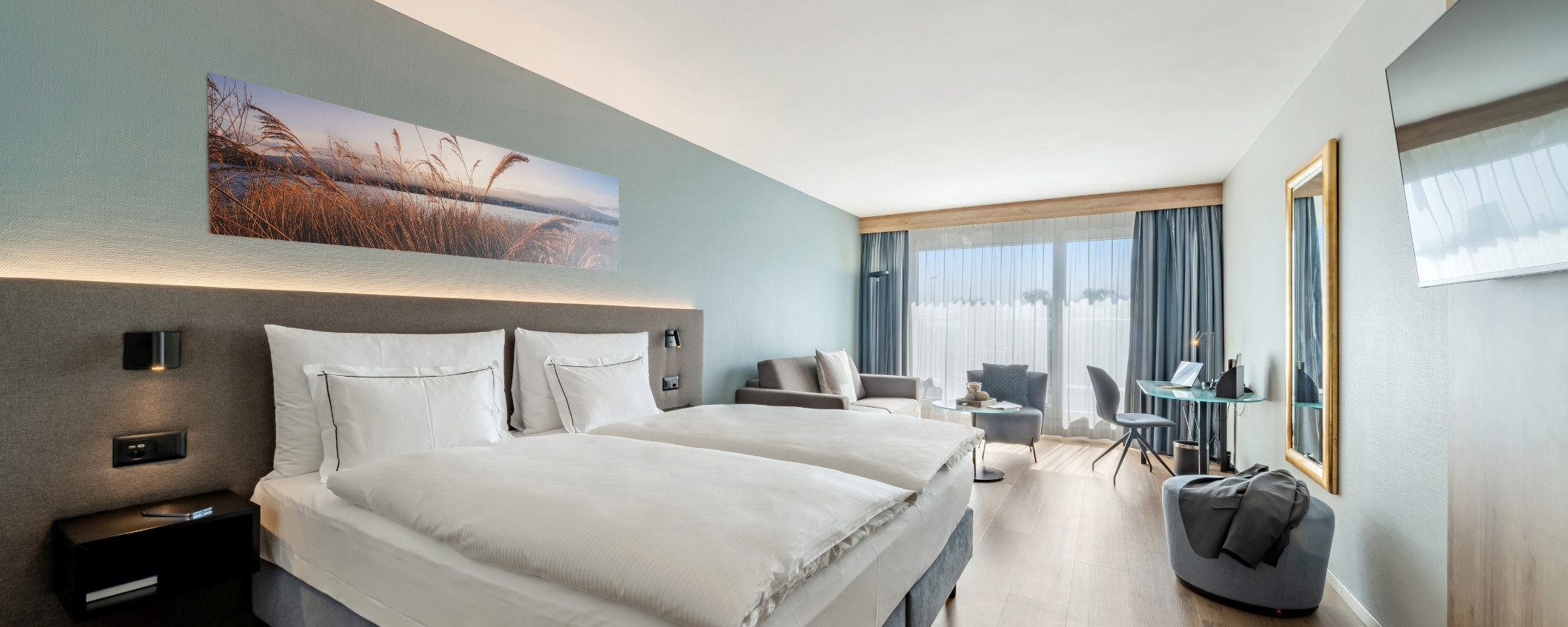 Nach einem anstrengenden Wandertag sorgt der Saunabereich für Erholung und Entspannung. Atemberaubende Sonnenuntergänge gibt’s im SEEDAMM PLAZA kostenlos mit dazu.