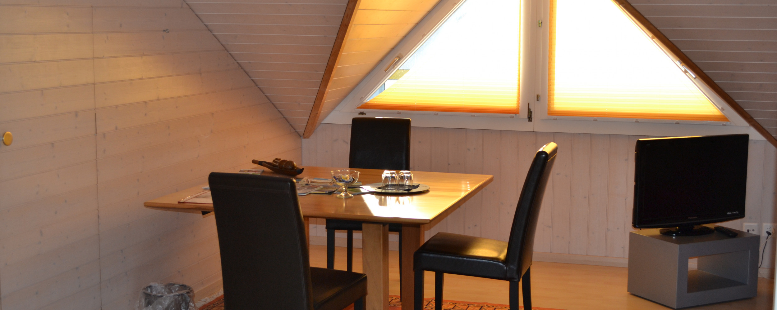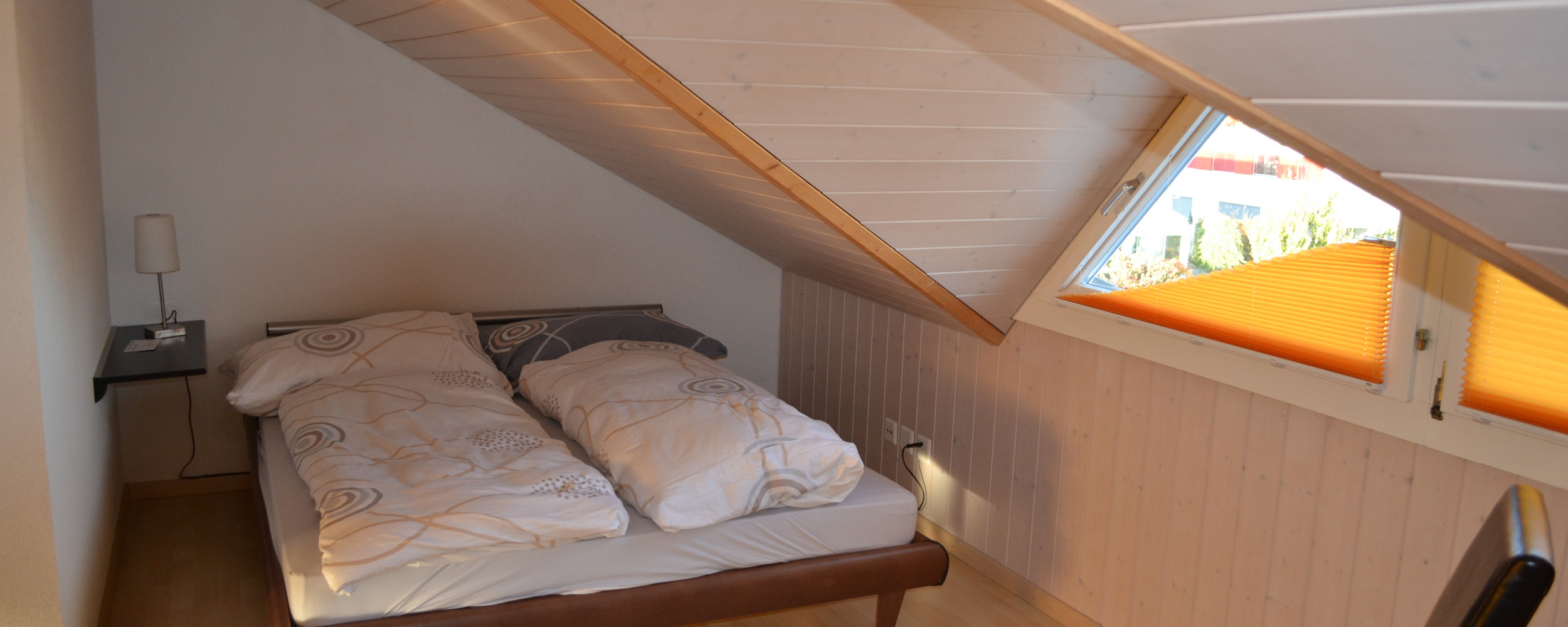 Fünf Minuten vom Städtchen in westlicher Richtung, ruhiges Wohnquartier, Reiheneinfamilienhaus (Dachgeschoss). Wir sprechen deutsch und französisch.