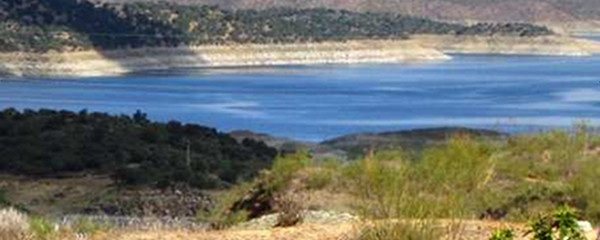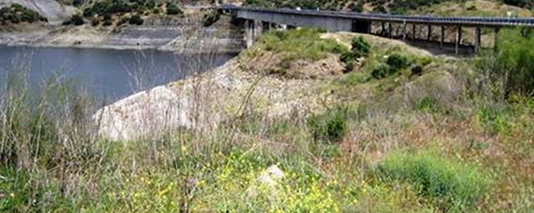 Auf dem Weg dorthin kommen wir an einem römischen Meilenstein vorbei, was uns bestätigt, dass wir wirklich auf einer ehemaligen Römerstrasse unterwegs sind. Kurz bevor wir den Tajo überqueren, kreuzen wir den Zufluss Rio Almonte, und kurz darauf eben den Rio Tajo auf langen Brücken, die Strasse, Eisenbahn und Pilgerweg zusammenfassen. Allerdings überqueren wir keine fliessenden Flüsse, sondern Stau-See-Arme.