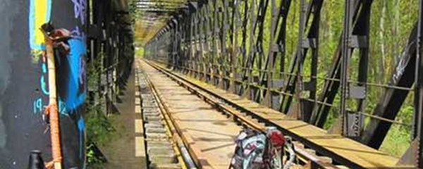 hinauf auf den Bahndamm