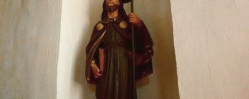 Ägidiuskirche in Mitterolang: 1138 errichtet, Christophorus-Fresko (vermutlich von Pacher) an der westlichen Außenwand bei Restaurierungsarbeiten 2002 entdeckt.