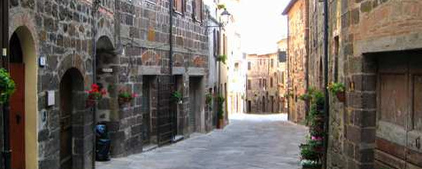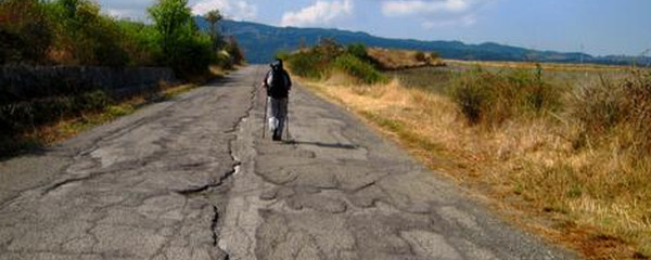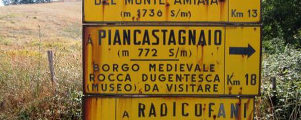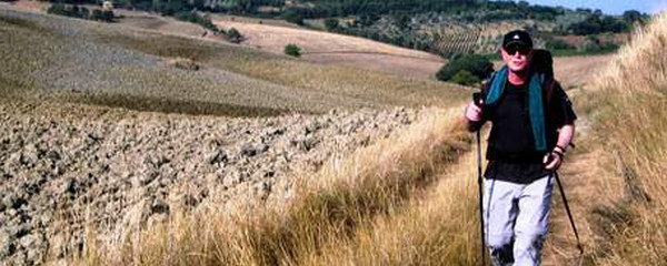Nach einer ausgiebigen Wanderung, den ganzen Tag in der «Area Naturale Val d'Orcia», erreichen wir schliesslich Radicofani, ein mittelalterlichen Dorf, das am Fusse einer Burg liegt, die auf einem Basaltkegel über dem Dorf liegt. Hier hat zum Ende des 13. Jh. ein aus Siena vertriebener Ghino di Taco als Raubritter gewirkt und wurde vom Volk verehrt, denn er plünderte nur die wohlhabenden Reisenden. Wir Pilger wären da also kaum gefährdet gewesen.