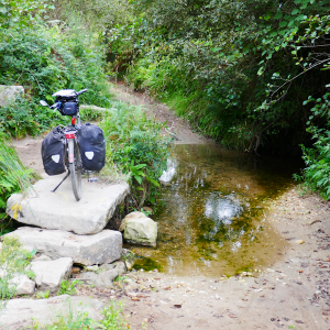 Das sieht schlimmer aus, als es ist. In der meisten Zeit des Jahres kann man problemlos im Rollstuhl durch diese Furt fahren. Das Wasser ist hier nur wenige Zentimeter tief und der Untergrund frei von grossen Steinen.