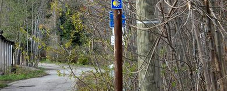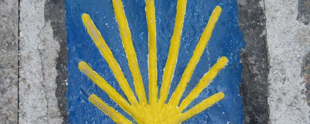 Wir folgen grundsätzlich dem internationalen Jakobsweglogo. Das Zentrum der Muschel zeigt die jeweilige Laufrichtung an.