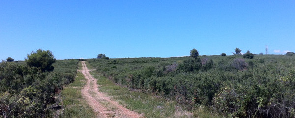 Hier queren wir den Bach, gelangen in einer Heidelandschaft auf einen Hügel mit dem Verkehrsknoten Bel Air und von dort weiter westwärts zum Etappenort Montarnaud.
