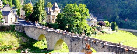 Bis La Rouquette wandern wir dem Lot entlang, dann verlassen wir die Talsohle nd kommen so auf die Anhöhe, durch die sich der Lot eine Schlucht gefräst hat, und bleiben bis zum Etappenort auf der Höhe. Vereinzelt wird der Blick frei auf den Lot da unten in seiner Schlucht.