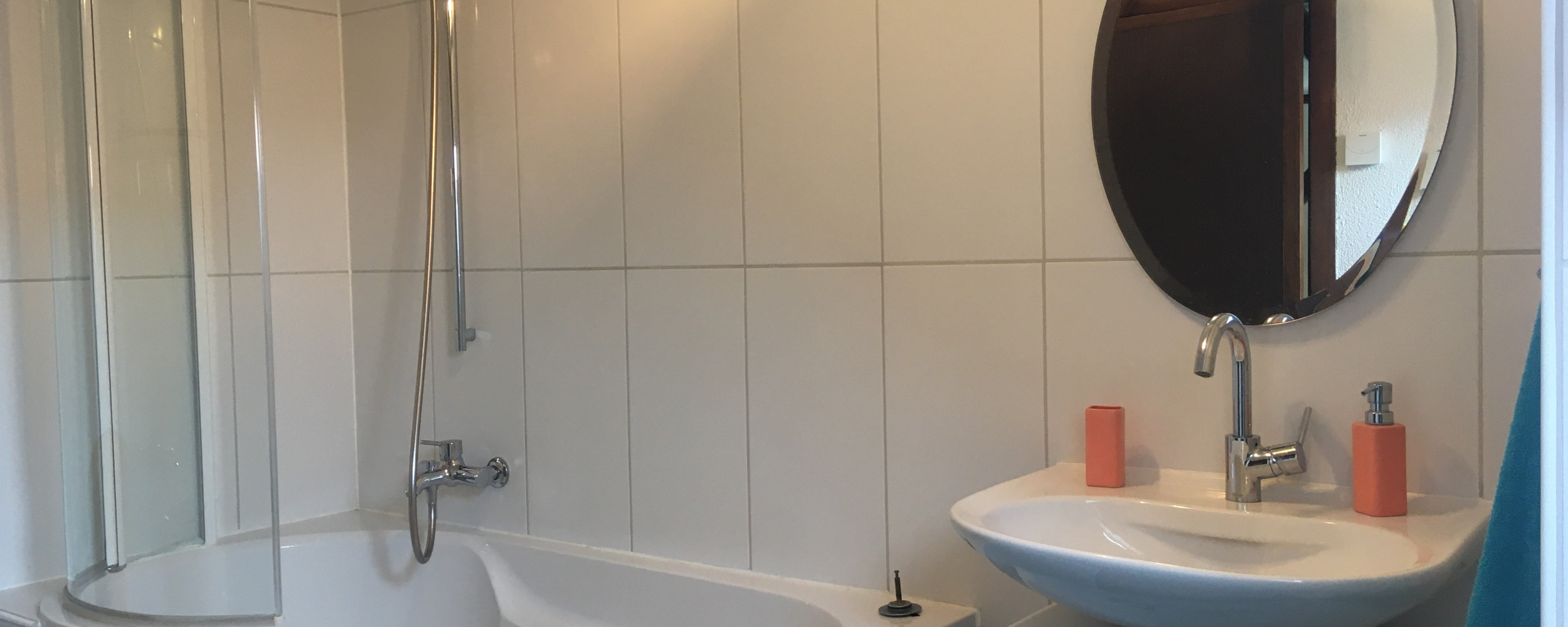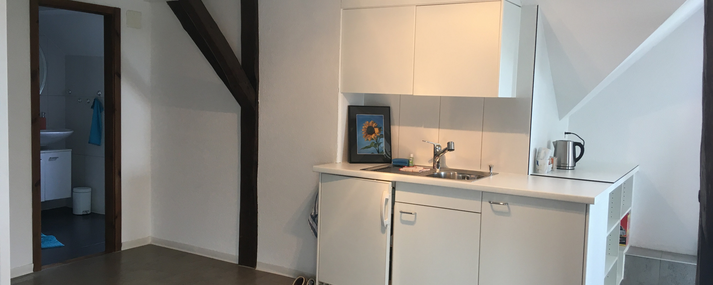 Ein Appartement ausgestattet mit mit eigener Dusche/Badewanne/WC, einem Doppelbett (140cm), das eigentlich gut auch für zwei Personen geht und einer Schlafcouch, die auch genutzt werden kann (eine Person).