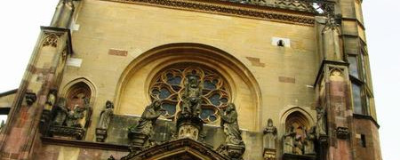 Nous nous approchons toujours plus des Vosges. L'Alsace a vécu plusieurs guerres franco-allemandes. C'est pour cela que la population est bilingue. On y parle autant l'allemand ue le français.Une partie de la population alsacienne parle encore aujourd'hui couramment la langue locale, l'alsacien, qui est une langue alémanique. Mais plus notre route avance, plus le français sera dominant. Nous arrivons enfin à Thann, petite localité avec un centre-ville pittoresque et une belle cathédrale. Notre chemin se termine devant l'Office de Tourisme.