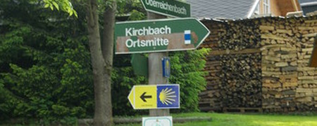 Wir folgen grundsätzlich dem internationalen Jakobsweglogo. Das Zentrum der Muschel zeigt die jeweilige Laufrichtung an.