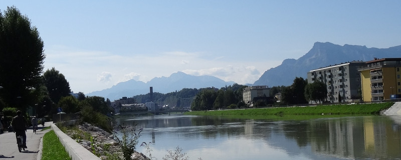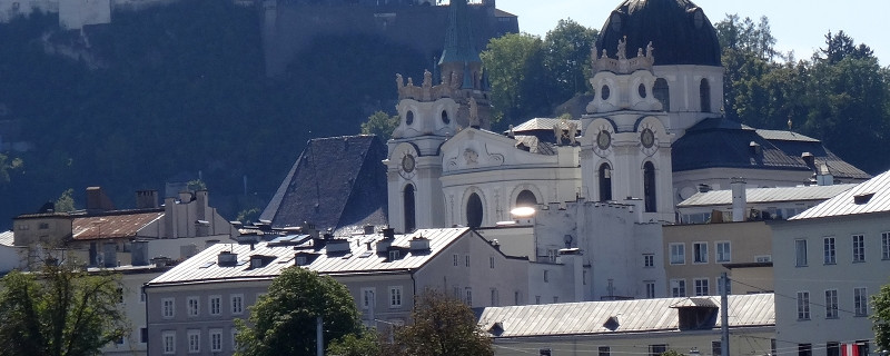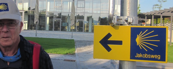 Beim Dom von Salzburg beginnt der Voralpine Jakobsweg, der von Salzburg nach Bayern/Deutschland führt und dort in den Münchner Jakbsweg mündet. Bis fast zum Ende unserer Etappe hat der Voralpine Jakobsweg die gleiche Wegführung, bevor er uns nordwärts verlässt.