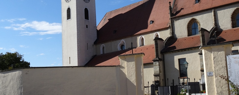 Hengstberges. Schöner Aussichtspunkt. Von Hengstberg aus geht es dann Richtung Neustadtl an der aufhört.Donau weiter. Wir folgen den Markierungen des österreichischen Jakobswegs (gelbe Schilder mit Muschel und Pfeil).Wir passieren das Ortsschild Winthan und erreichen nach kurzer Zeit die Luegerkapelle. Nach etwa 2 Km erreichen wir über Wiesen und Äcker Neustadtl mit seiner wunderschönen Jakobsstatue und Kirche. Nach der Kirche verlassen wir den Ort auf der Strasse nach einem Bildstock biegen wir links in eine kleine Strasse ein. Wir nehmen die Richtung zum Kollmitzberg rechts bergauf bis zur Kirche. Bei Kirche vorbei gehen wir auf einem Wiesenweg bergab. Wir erreichen den Weiler Kirchfeld und gelangen später zur Bundesstrasse 119. Gegenüber weist uns ein Wegweiser zum Ardagger Stift. Es lohnt sich hier die Kirche zu besichtigen oder von den Übernachtungsmöglichkeiten zu profitieren. Wer weiter bis Zeillern geht verlässt den Ort in der Richtung aus der wir gekommen sind, aber bei der Gabelung Pfaffenberg folgen wir der kleinen Strasse (S) bei einem Bildstock vorbei runter zum Denkenbachl. Nach dem Bach, folgen wir der Strasse nach Zeilern, bis zur Kirche wo unsere Etappe aufhört.