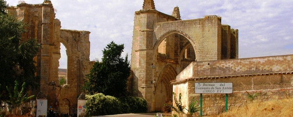 Enfin, nous apercevons Castrojeriz situé à flanc de coteau, ainsi que les ruines gothiques du castillo de Castrojeriz. La Collégiale de Nuestra Señora del Manzano est un monument national et héberge la Santa Maria d'Almacan, célèbre statue de la Madone du 13ème siècle.