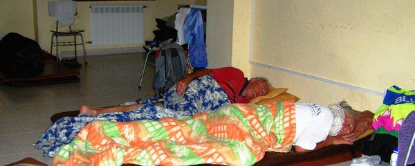 L'auteur des photographies ci-jointes a été impressionné par l'auberge des pèlerins de Logroño : un hébergement très simple, et, pour ceux qui le désirent, un souper (dîner) en commun autour d'une longue table, Rioja inclus, et pour terminer, on se rend dans l'église à une soirée multiculturelle. Et tout ceci ne coûte rien, mais un don bénévole est le bienvenu.