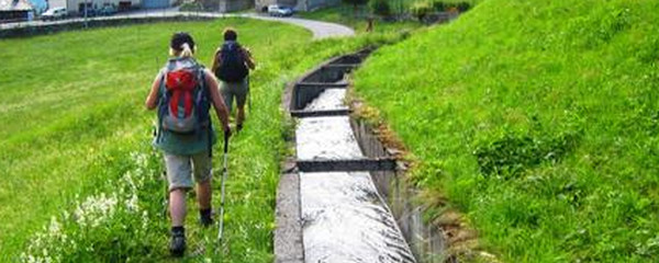 Tout en cheminant en direction de la fin de notre étape, nous rencontrons toujours plus de canaux d´arrosage, un fait qui se reproduit très souvent dans les régions peu pluvieuses des Alpes. La fin de notre étape d´aujourd'hui se situe à Echevennoz. Vous trouverez où dormir dans la partie supérieur du village.