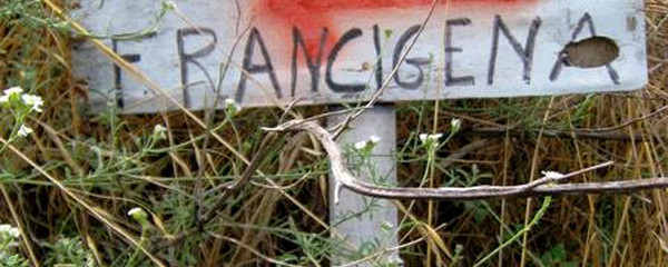 Juste après avoir quitter Viterbo, l'actuelle Via Francigena fait une digression à l'ouest vers la SS2 (SS Cassia), traverse celle-ci et retourne juste aprés en direction de Rome. A la place de faire ce contour supplémentaire (sans beauté spéciale) nous prenons le chemin classique et plus direct que nous documentons ici. Il est mentionné comme «Strada Signorino» et nous l'appelons «variante A». Il est amusant de remarquer les variations, parfois divérgentes, des signalisations de chemins, surtout lorsque l'on fait le mauvais choix.
