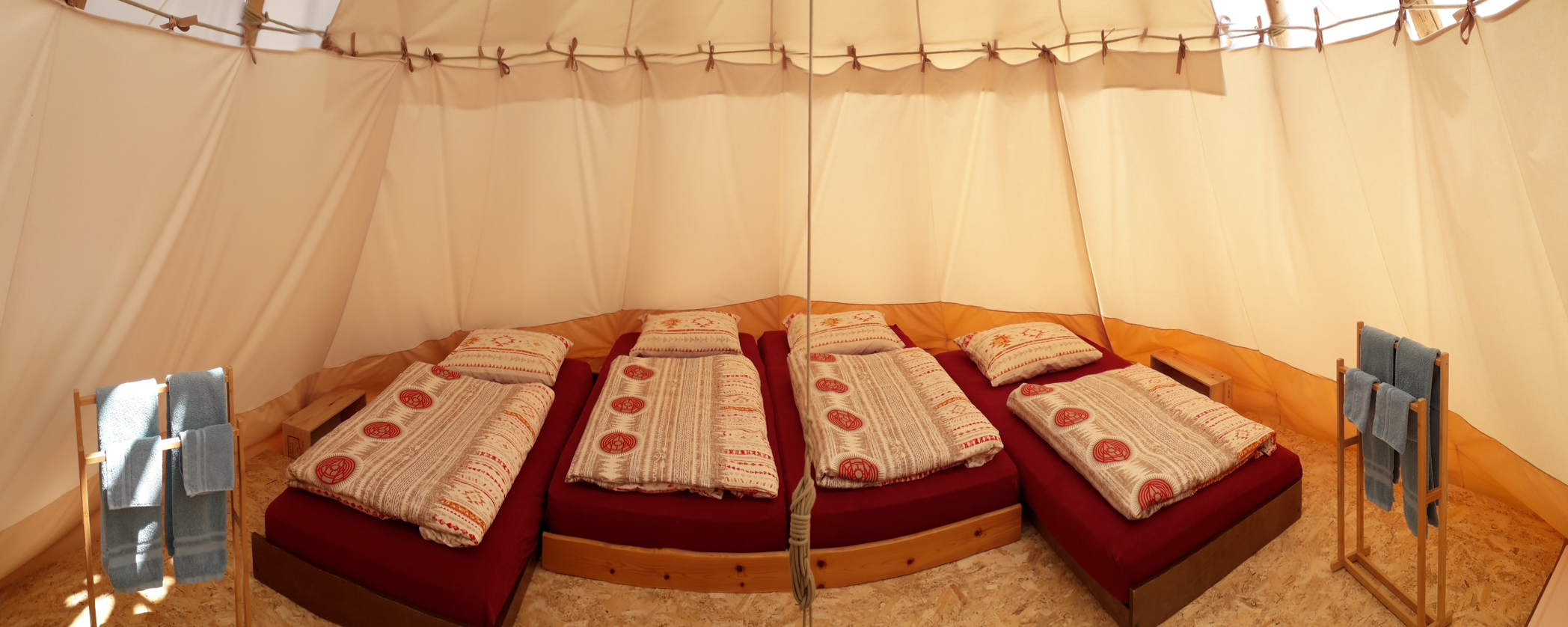 Schlafen im Tipizelt, auf Matratzen in Duvet und Decken.