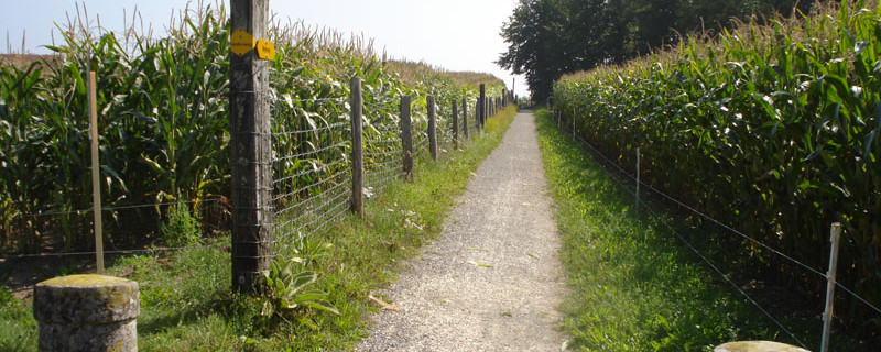 Le tronçon Blumberg - Schaffhouse fait partie du chemin des monastères thurgoviens, qui nous mènera de Blumberg à Tobel. Cette étape fait également partie du chemin Schaffhouse-Zurich qui nous mène de Blumberg à Rapperswil-Jona. Nous sommes sur les chemins de Saint-Jacques suisses.