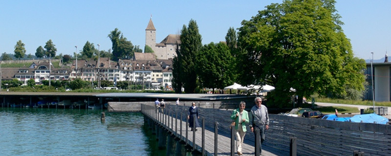 Nous parcourons aujourd’hui une distance de 23,5 km avec un temps de marche d'environ 6 heures de Pfäffikon à Rapperswil-Jona. C’est une étape de difficulté moyenne qui nous attend. Nous partons de l'église de Pfäffikon en direction du sud et longeons le lac. Nous suivons les sentiers balisés et arrivons à Wetzikon après environ 6,0 km. Nous cheminons sur l’asphalte et les sentiers naturels. Nous traversons les voies ferrées et les suivons jusqu'à ce que nous atteignions le Sennwald. Après environ 16,0 km depuis le départ, nous atteignons Bubikon. Nous quittons ce village en direction d'Egelsee et atteignons la périphérie de Rapperswil-Jona après environ 20 km. Nous suivons le Höhenweg et traversons la route principale. Nous suivons la Meienbergstrasse jusqu'à ce que nous tournions sur la Brauereiweg. Peu après, nous traversons une voie ferrée et arrivons à une route principale. Nous la suivons et arrivons au centre de Rapperswil-Jona.