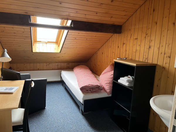 Zimmer haben ein Lavabo, WC/Dusche auf dem Gang zur allgemeinen Benützung.