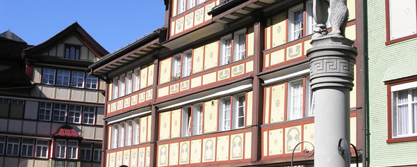 A côté d’un pont, nous trouvons la chapelle Ste-Anne, datant du 18ème siècle, nous continuons en suivant le chemin pédestre qui longe la Sitter et atteignons ainsi Appenzell. Le nom du village vient de la propriété " Abbacella", qui appartenait à l'abbé du couvent de St-Gall et qui a été nommée paroisse indépendante au 11ème siècle.