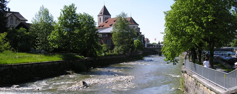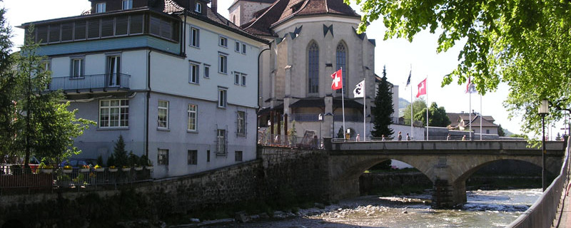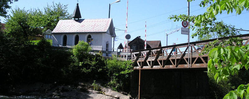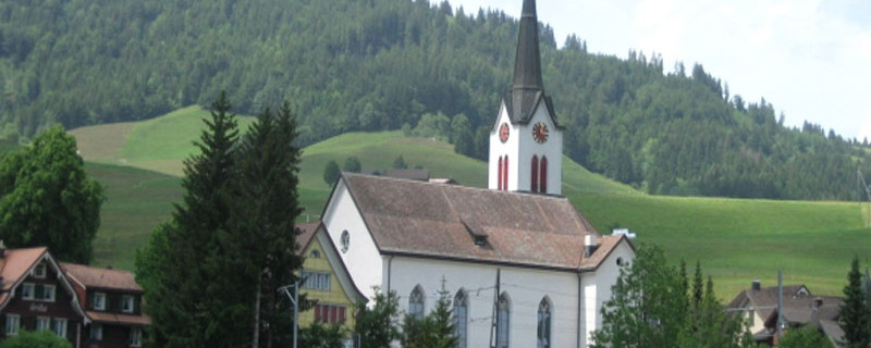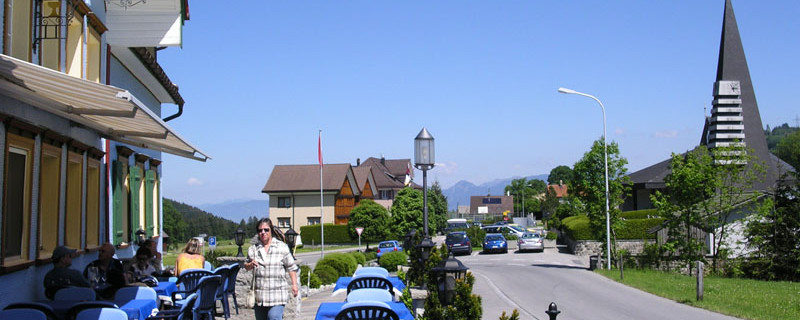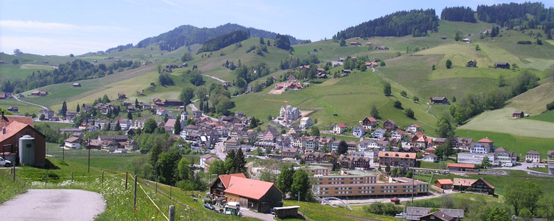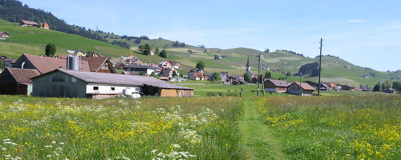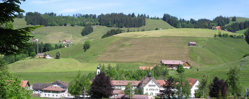 Juste avant le nouveau pont Widenbrücke (816m), nous franchissons la ligne de chemin de fer, passant à côté de la gare nous arrivons au village d'Urnäsch, au Moyen Age, les apôtres St-Philippe et St-Jacques étaient les patrons de l'actuelle église réformée. Le centre du village avec ses maisons en bois coloré des 17ème et 18ème siècles, ainsi que le musée de coutumes appenzellois sont particulièrement remarquable.