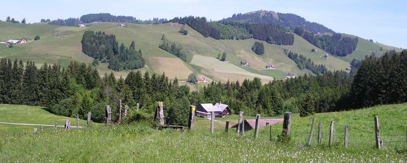 Derrière le couvent commence "le chemin de méditation" (Besinnungsweg) que nous suivons à la montée en passant par des alpages et des forêts. A l'altitude de 950m nous atteignons l’alpe "Studen" et un peu plus haut l’alpe "Unter-Laufenegg" (1000m). Ensuite nous descendons par le "Chräghof" (923m) et "Haumösli" (888m) à Urnäsch, d'abord en passant par des prés et ensuite par un chemin forestier, Pour descendre jusqu’aux voies de chemin de fer nous quittons la route et prenons un petit sentier de prairie.