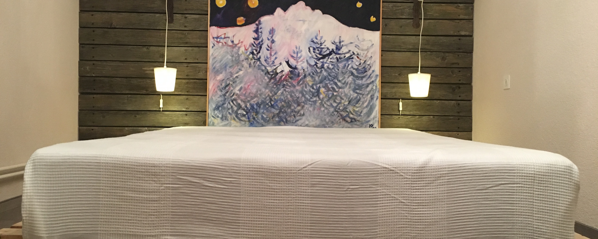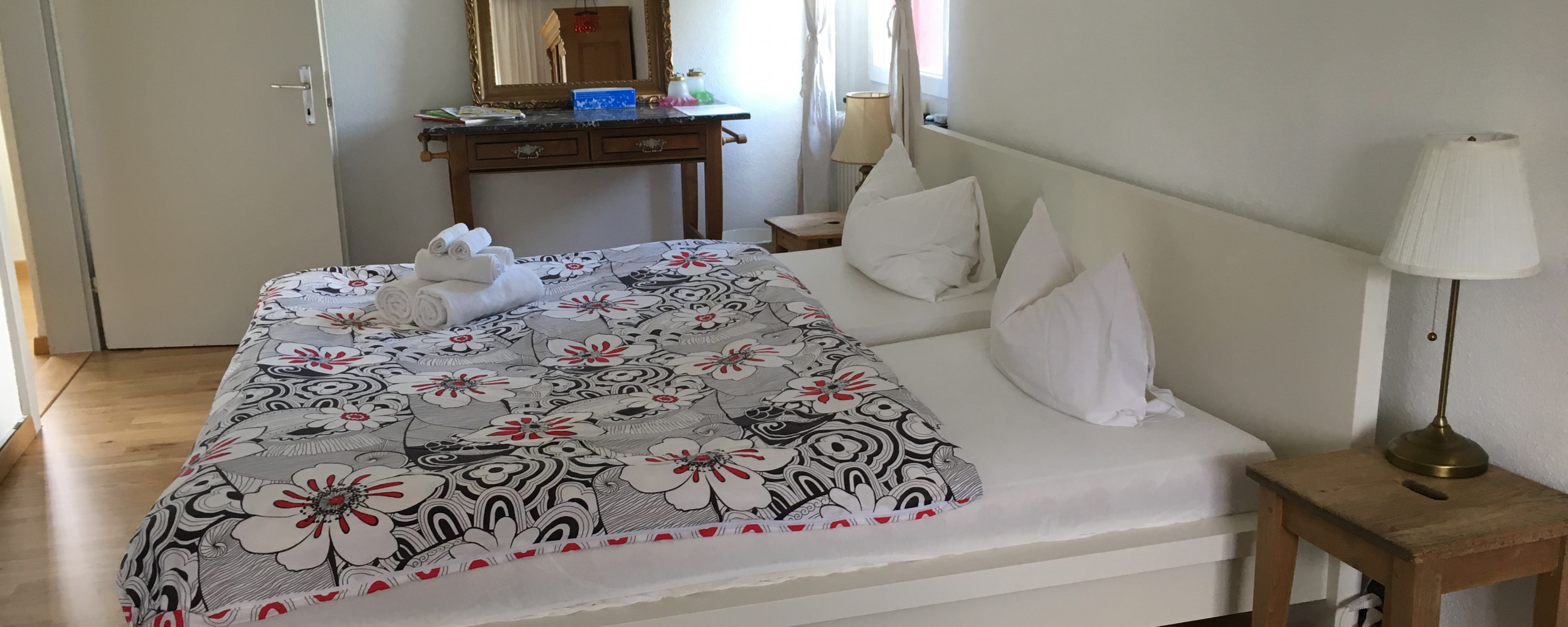 Grande maison dans un jardin, avec un grill une grande table et des bancs, belle vue sur les montagnes aux alentours. 4 chambres: 2 doubles, une simple et une chambre à 3 lits, avec douche et toilettes en dehors de la chambre. Buffet pour le petit déjeuner, repas le soir sur commande. A 5 minutes du village avec restaurants, magasins et un beau musée. Les prix par chambre sont publiés sur www.chezlise.ch.