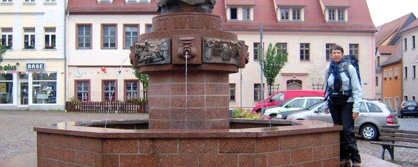 Wir verlassen Börln durch den Park und halten uns in Richtung Heyda. Kurz vor Heyda wenden wir uns nach links und pilgern durch ein Wäldchen an den Rand eines Steinbruches. Wir folgen dem Schotterweg ein Stück und biegen auf dem Pilgerweg nach rechts ein, durch zwei große Steine hindurch. Der Weg bringt uns nach Dornreichenbach. In der Mitte des Ortes gehen wir nach links und laufen aus dem Dorf hinaus. Wir gehen immer geradeaus weiter und verlassen die Straße auf einen verwachsenen Feldweg bis nach Körlitz. Dort folgen wir der Beschilderung bis zum Ortsausgang und gehen weiter nach Wurzen. Sobald wir die Stadt erreicht haben orientieren wir uns nach rechts in Richtung Zentrum und erreichen sobald die katholische Kirche.