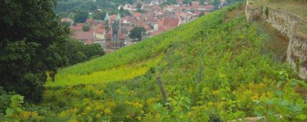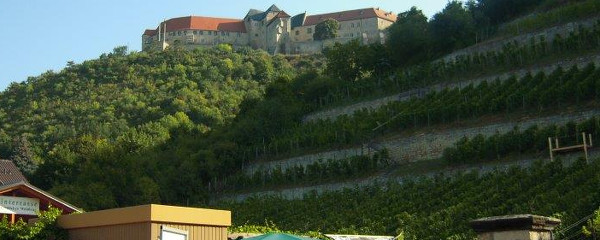 Heute werden die stillgelegten Gelände zum großen Teil wieder der Natur überlassen. Vor Großkayna geht's auf dem Weg zum Südfeldsee. Am See entlang gehen wir etwa einen Kilometer bis uns der Pilgerweg nach rechts weist, über die Straße auf einen Radweg führt und wir über die Felder nach Rossbach gelangen. Wer nicht weitergehen will kann am Hassesee auf dem Campingplatz um Unterkunft fragen. Wir gehen weiter bergan bis zu einem alten Fabrikgebäude und daran vorbei bis zur B 176. Diese querend, erreichen die Pilger Pettstädt. Wir gehen weiter durch das Dorf mit seinen Pflasterstraßen und werden auf den Höhenweg zum Brommerberg geleitet. Große Windräder sind die Stromlieferantennehmen. Nach vier Kilometern haben wir den Rand der «Alten Göhle» erreicht. Durch dieses Waldstück folgen wir der Ausschilderung nach Freyburg. Wir verlassen den Wald bis zur Schnellstraße die wir überqueren weiter geht's auf dem Burgholzweg zum Edelacker. Hier entscheiden wir uns entweder zur Neuenburg abzubiegen um eine seltene Doppelkapelle zu besichtigen oder man folgt dem Pilgerweg, der durch den Schlifter steil zur Stadt unserem heutigen Tagesziel hinunterführt. Im idyllischen Weinort finden wir Unterkünfte für jeden Geschmack.