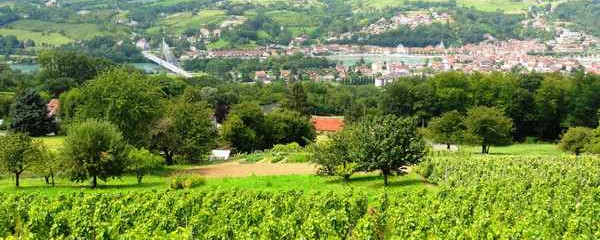 Poiché però il percorso pellegrino si snoda anche qui sulla sommità, non arriviamo direttamente a Seyssel che si trova nella valle sul Rodano, ma passa circa 200 metri più in alto sopra Seyssel. Poco sotto il percorso si trova invitante un rifugio per pellegrini con una splendida vista, ma da lì una visita richiede proprio questi 200 metri di discesa e poi di nuovo una salita.