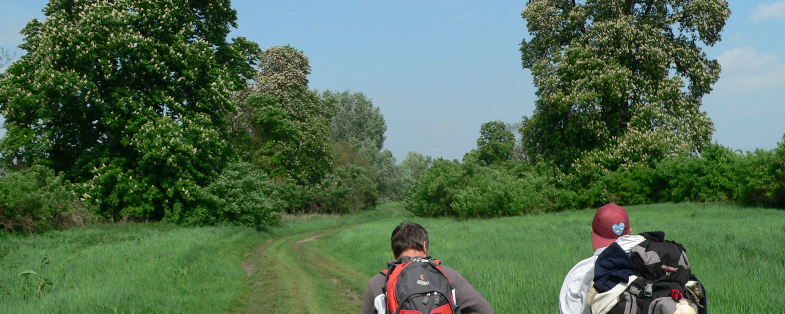 Bei dieser Etappe gibt es keine Touristenwegkennzeichen, wir folgen ausschliesslich der Jakobsweg-Markierung von Tata bis Nagyimánd.