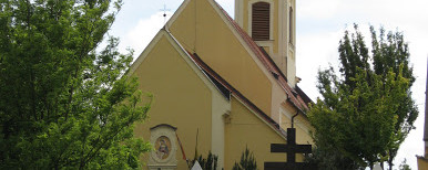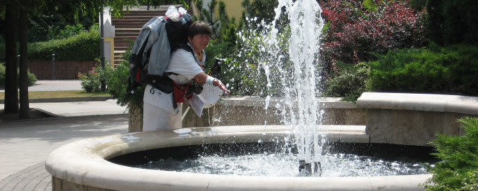 Beim Verlassen des Dorfes gehen wir auf der Überführung über die M1, E66 Autobahn(Budapest-Wien) und gehen weiter auf einen landwirtschaftlichen Weg, der mit Waldstreifen geschützt ist. Bald einmal erreichen wir Nagyimánd die weltbekannte Thermalstadt. Vor dem Rathaus ruhen wir uns beim Pilger -Springbrunnen aus. Die Stadt bietet Unterkunftsmöglichkeiten, Gaststätten und Sehenswürdigkeiten.