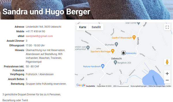 Auf den Seiten von www.camino-europe.eu kann für eine telefonische Reservation die Telefonnummer der Unterkunft auf dem Smartphone direkt angeklickt werden. Damit wählt das Smartphone anschliessend automatisch diese Telefonnummer.